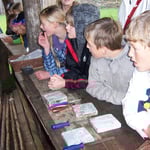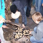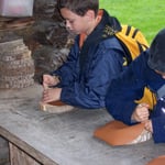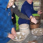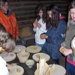Wir haben Mehl gemahlen, Fladen gebacken und kleine Lederbeutel selbst hergestellt, Zinnfiguren gegossen und kleine Schalen getöpfert.