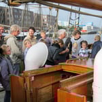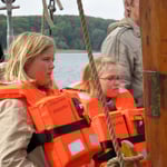 Zunächst zeigte die Autorin allen Schülern das Ober- und Unterdeck des Schoners, und dann kam endlich der Moment, auf den die 5a so lange gewartet hatte: Die ATALANTA stach in See in Richtung Insel Walfisch. Unterwegs lernten wir viele interessante Dinge, z.B. wie man Segel aufrichtet und wie die Besatzung der früheren 'Pakas', so der alte Name des Schoners, gelebt haben soll. Natürlich wurde so manches umgebaut, aber vom Prinzip ist die ATALANTA so wie vor 110 Jahren, als sie gebaut wurde.