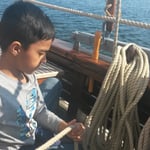 Wir haben geholfen, die Segel zu hissen und die langen Seile wieder einzuwickeln.