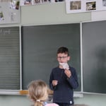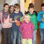 Die Schülerinnen und Schüler der 4ten Klasse beschäftigten sich seit einiger Zeit mit dem Thema "Glück" und malten, was sie selbst brauchen um glücklich zu sein. Zudem überlegten sie sich, welche Glücksbausteine zu einem glücklichen Lebensgefühl gehören. "Jeder ist seines Glückes Schmied"- jeder ist für das eigene Glücklich sein verantwortlich, aber man kann auch andere glücklich machen. Aus diesem Grund verteilten am 5.04. alle Schüler der 4ten Klasse 300 selbstgebastelte Glücksschweinchen mit kleinen Glücksbotschaften an alle Schüler, Schülerinnen, Lehrer und Mitarbeiter unserer Schule.