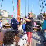 Am19.7.17 waren 16 Schüler, Frau Neudert, die Projektleiterin Carmen Blazejewski und ihre Tochter Jojo mit einem großen Fotoapparat auf der „Qualle“. Das ist ein Schiff ganz aus Holz, und wir konnten uns vorstellen, wie damals die Piraten von Klaus Störtebeker auf der Ostsee unterwegs waren.