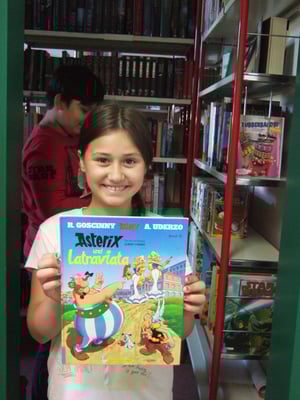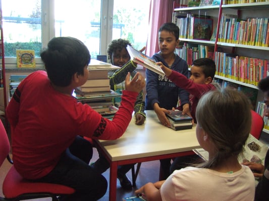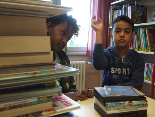 In den Regalen standen viele Bücher. Wir wollten sie gern lesen, aber sie waren noch zu schwierig für uns.