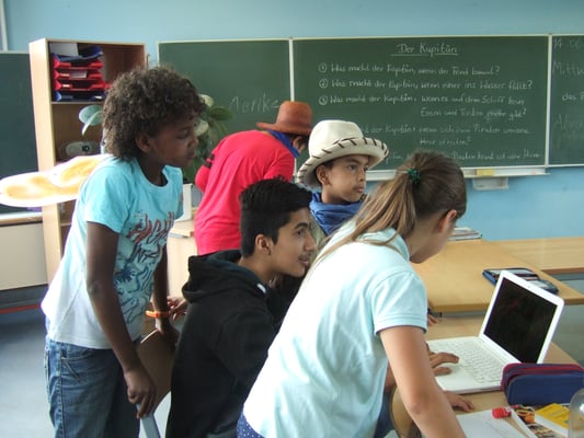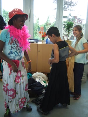 Zum Beispiel in einem Film. Den Film hat Carmen mit Kindern aus verschiedenen Ländern in Wismar gedreht. Die Kinder haben alles im Film selbst gemacht.